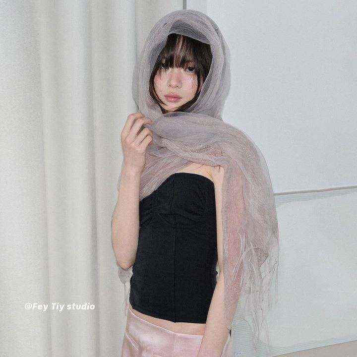 feytiy 清冷暮霭 水雾感3层丝巾 日本专柜平替春夏百搭纯色薄披肩
