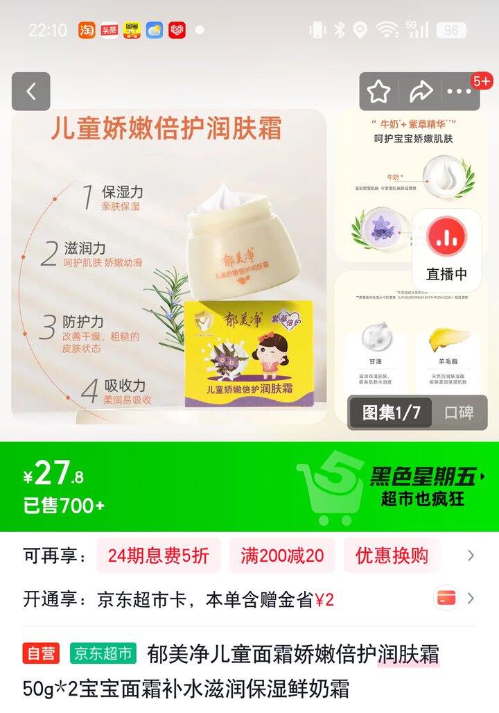 郁美净儿童面霜【19.8】