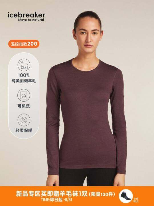 icebreaker新品可机洗美利奴羊毛女200 Oasis速干长袖T恤运动户外