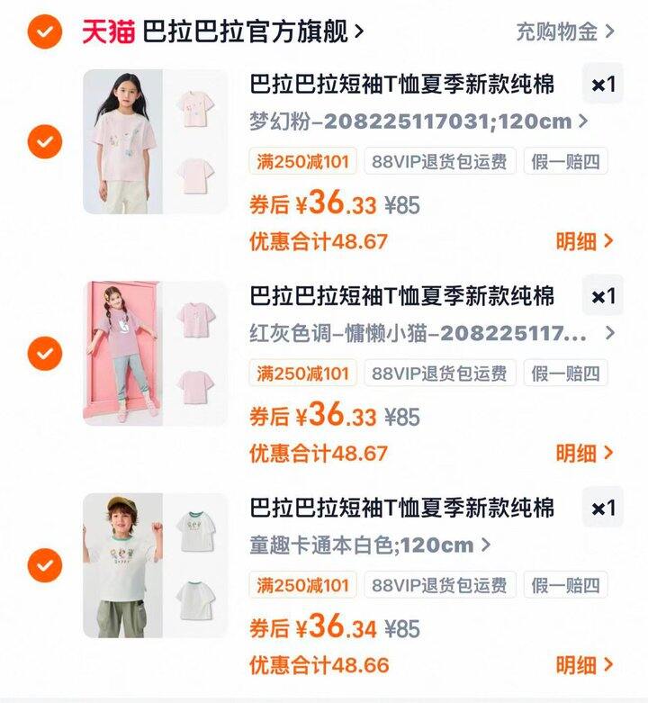 速选!巴拉巴拉儿童短袖