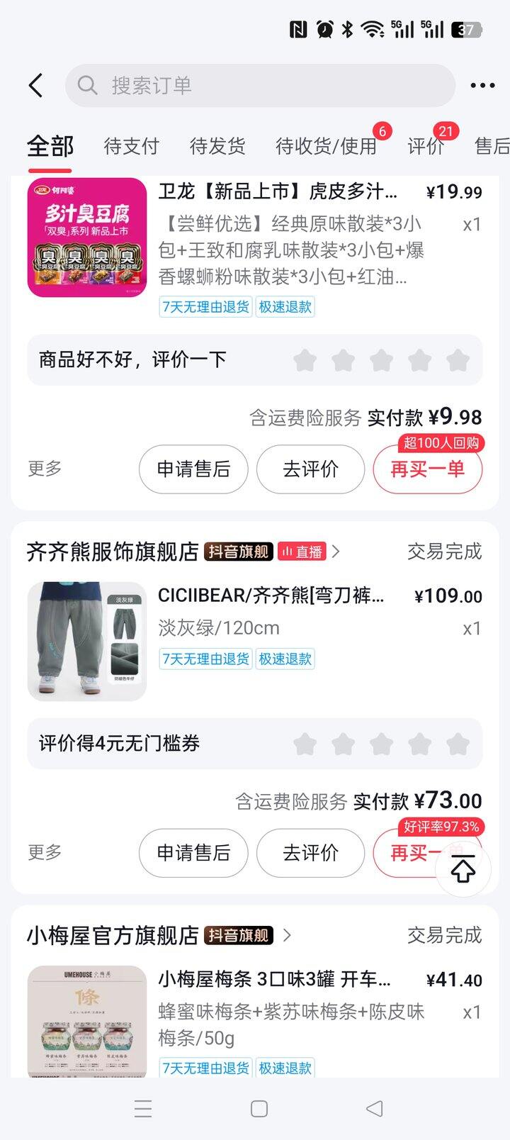 4-臭豆腐一般,家里没人要吃,估计得进垃圾桶5-裤子满意。齐齐熊我买了很多件了,基本没退过货,这条穿过了,挺好看的