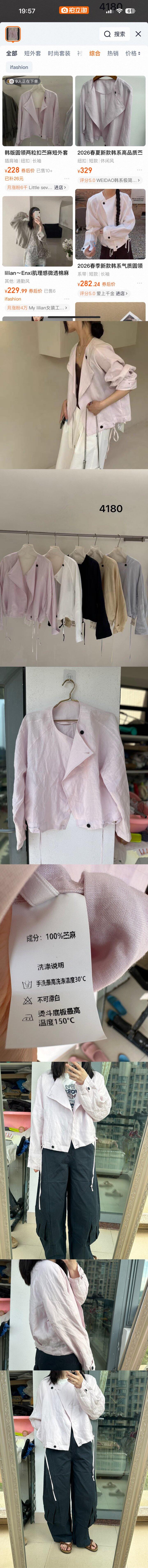 非常明亮的樱花粉!炒鸡好看,100%苎麻,淘宝在售180-280不等。
