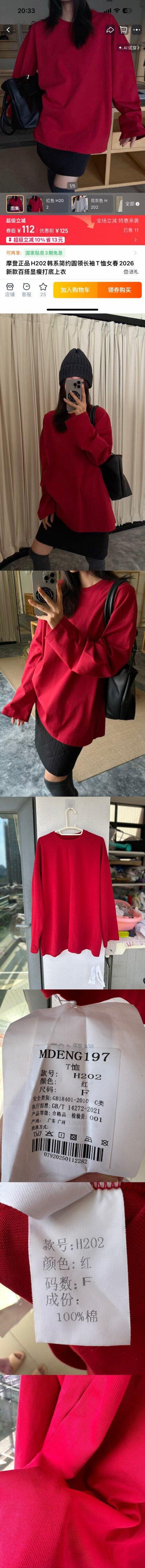 超正的大红色,100%棉!料子很厚实的长袖可以当裙子 衣长75 胸围132。