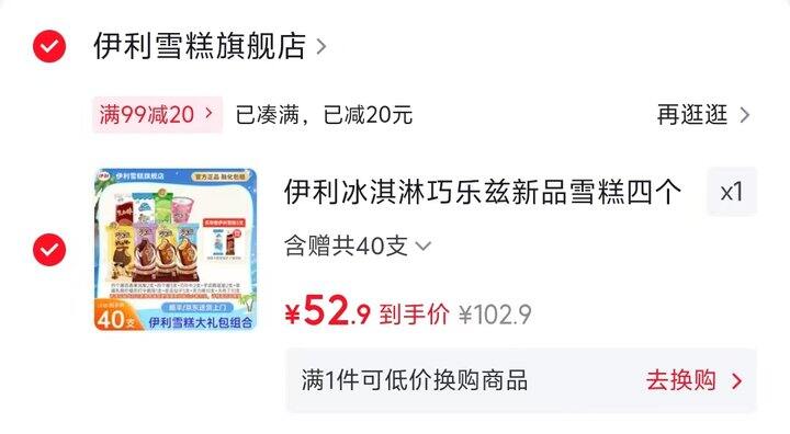 52.9💰伊利 巧乐兹 冰激凌组合 含赠共40支