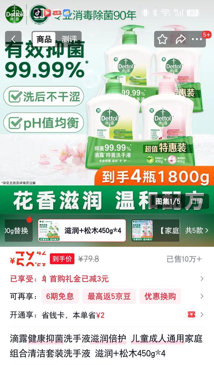 滴露抑菌洗手液450g*4瓶