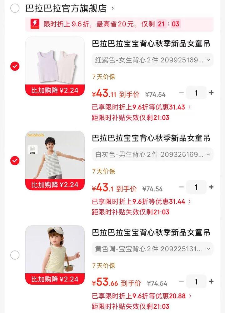 巴拉巴拉儿童背心2件装