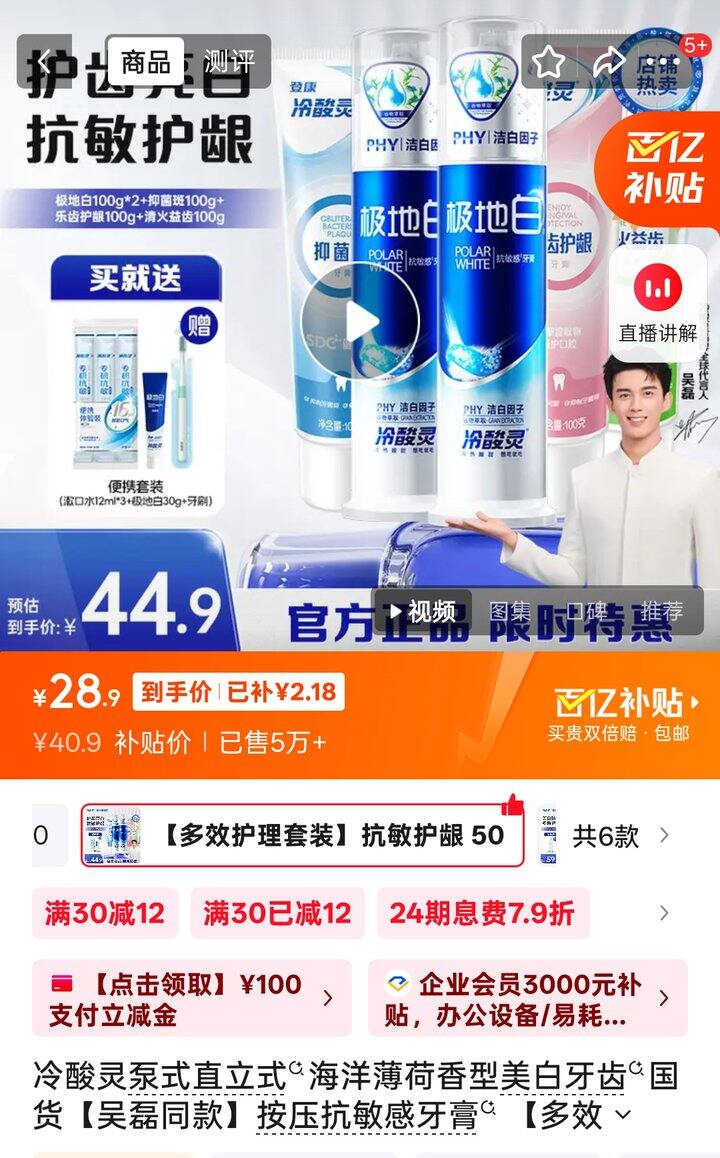 到手28.9💰;泵式2支+软管3支还送贈品5份(3支漱口水1牙刷1牙膏)