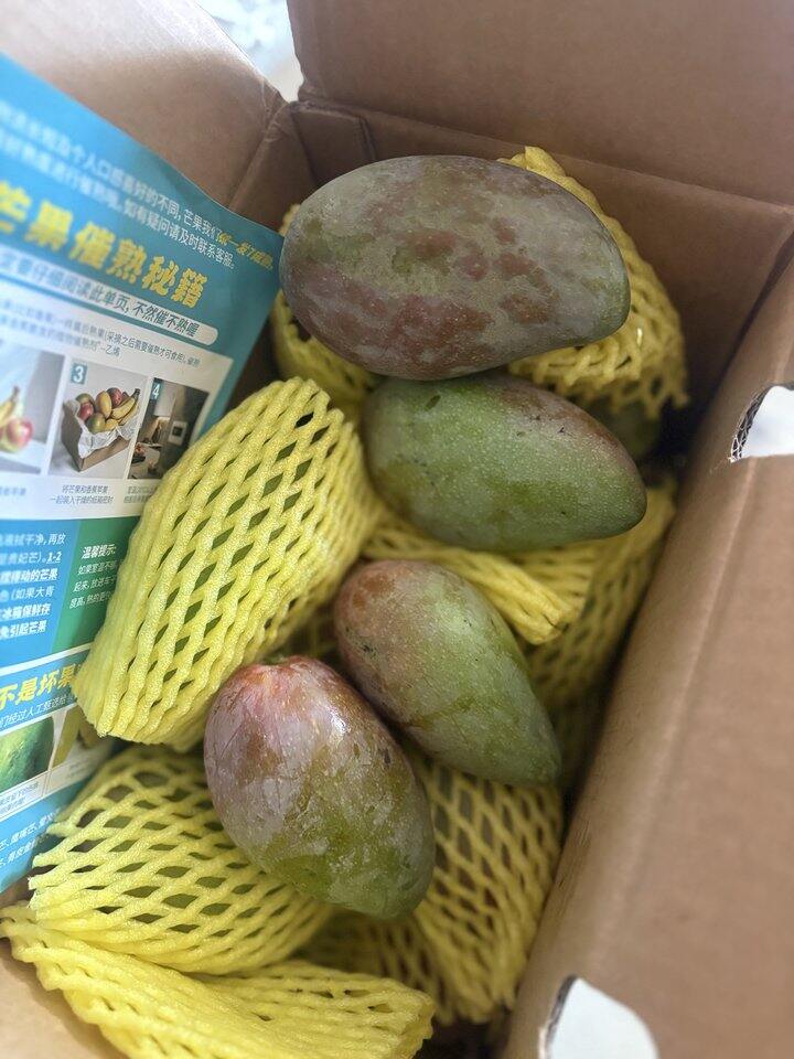 19.9买的芒果到了,不大,青的放放,挑了黄色的吃了一个,很甜,水分多,还不错~ 请问北方的朋友,你们那的姑娘果什么季节有的