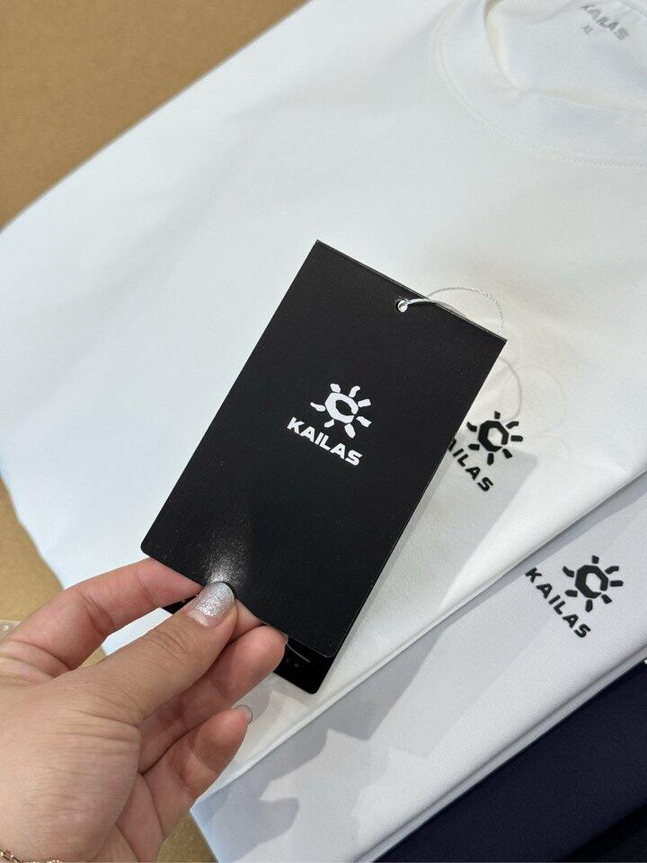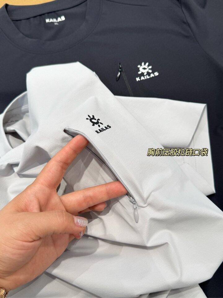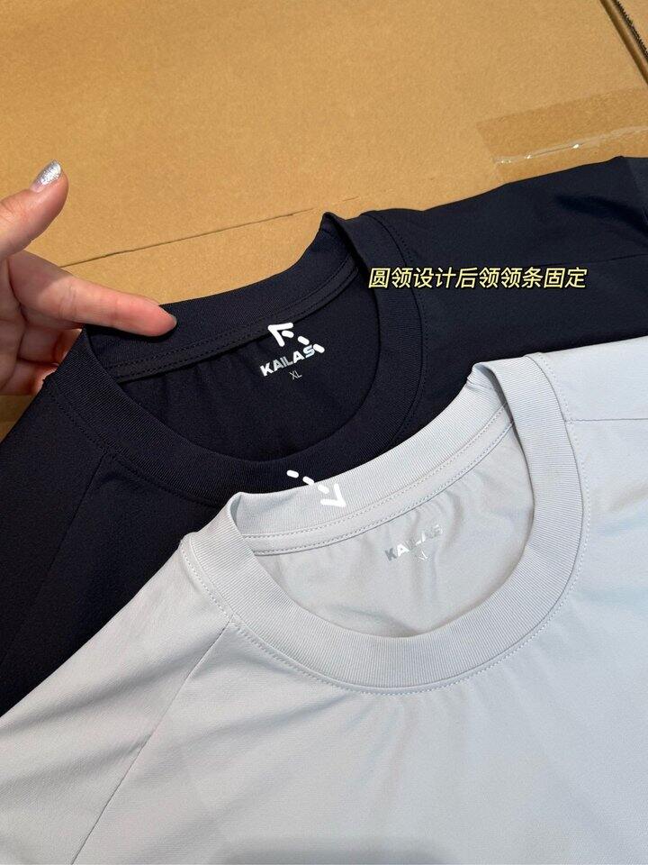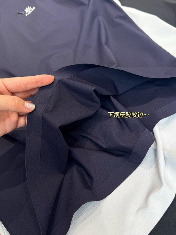 圆领设计,后领原布领条固定,袖口和下摆全部是专业压胶收边+固定打结处理,平整度直接拉满