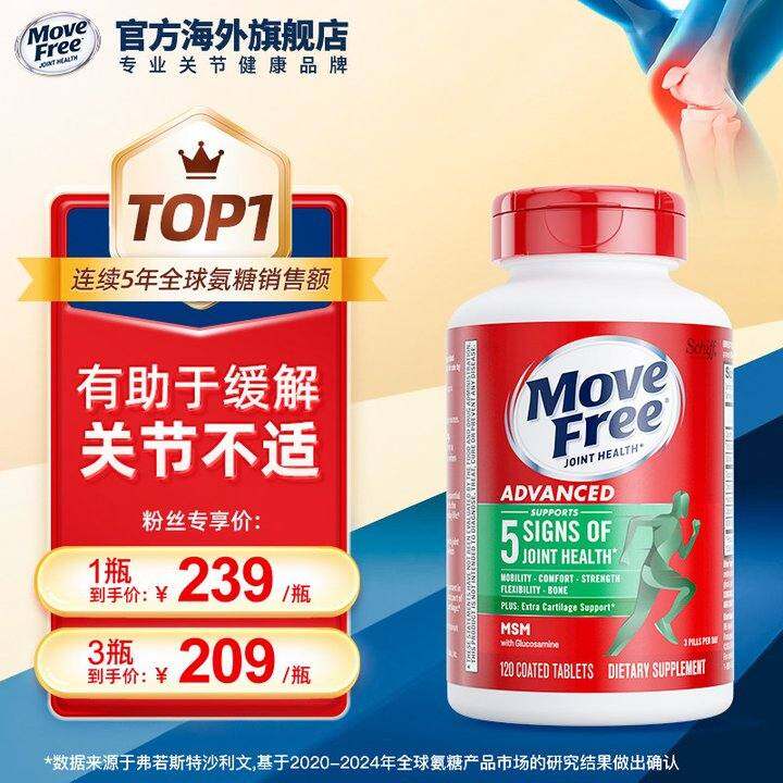 【播客专属】MoveFree绿瓶软骨素MSM中老年养护关节120粒绿标氨糖