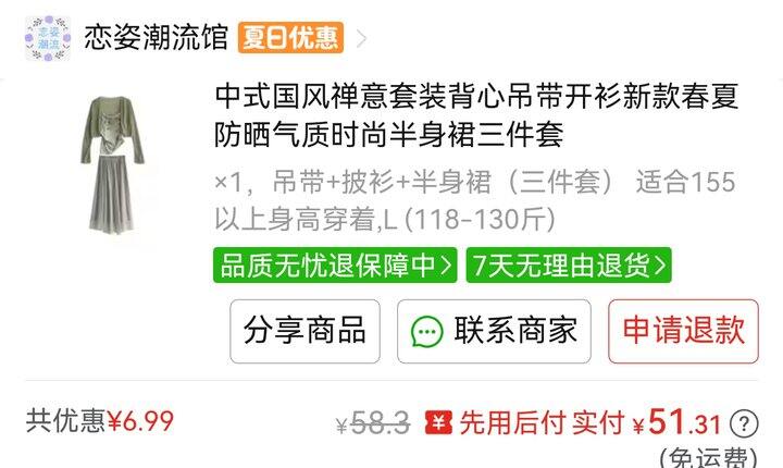 在tb找了一家店铺的主图给大家看一下效果,质量挺好的,这个价格真的超级超级超级值。如果喜欢这种风格的可以买料子,我觉得真的挺好的,比之前我买的200的要好。这个裙子就是那种真雪纺的,有垂坠感。反正有运费险,喜欢的可以买一下。