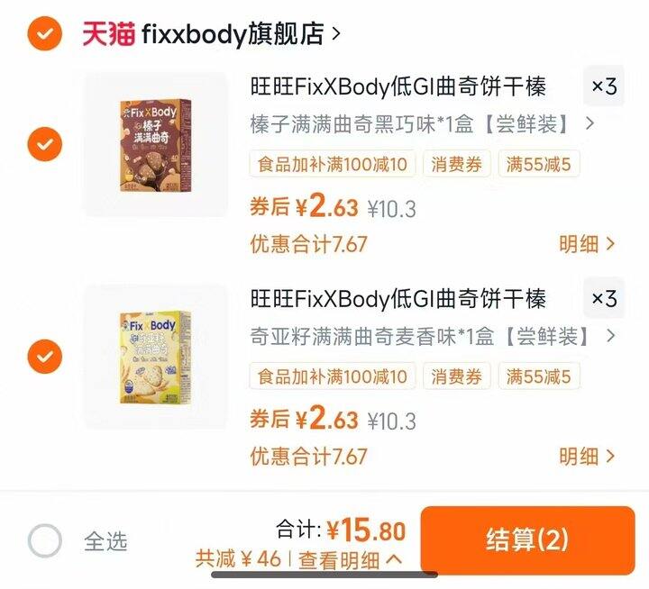 旺旺FixXBody低GI高纤曲奇