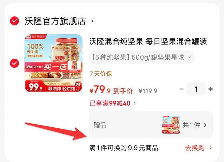 拍1件79.9,买1送1(赠品显示)到手2罐