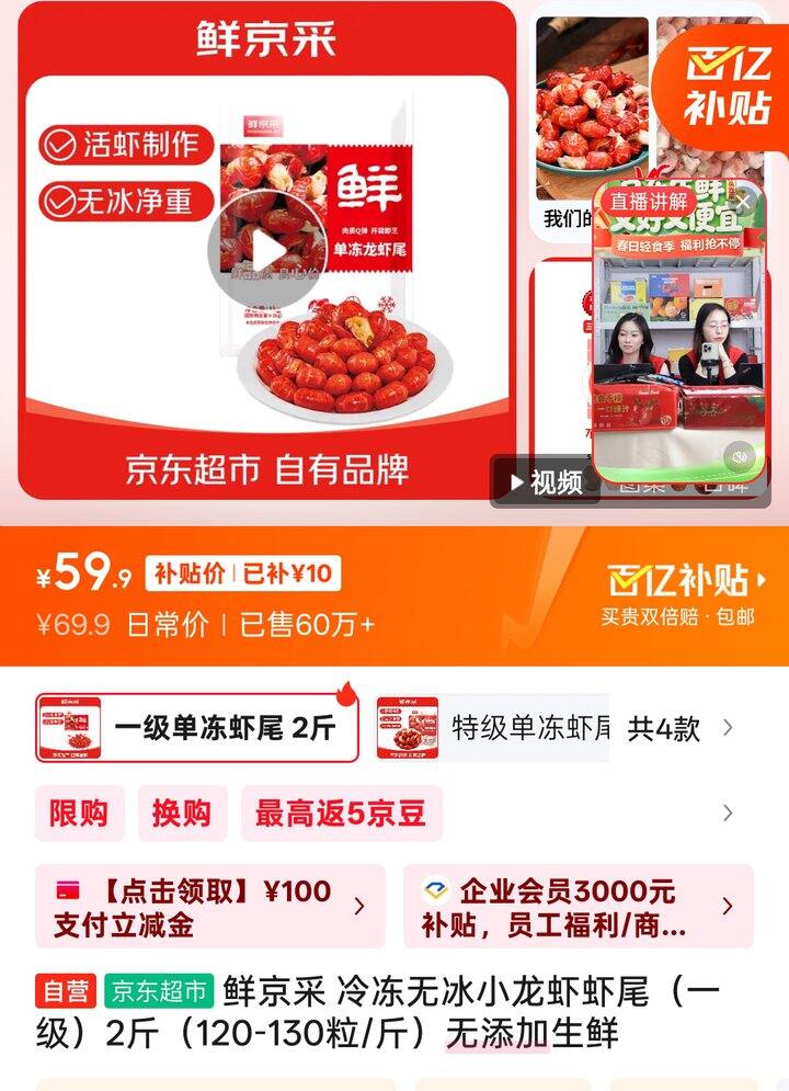 实付59.9💰,自营包邮,京东快递*活虾制作 新鲜