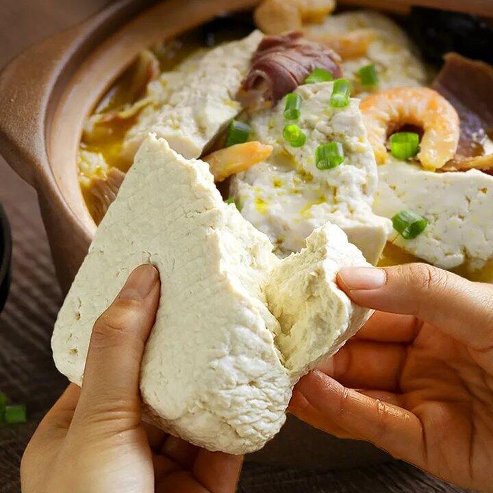 第一款新品【台州非遗工艺制作/高山清泉鲜磨豆腐】这款鲜磨豆腐,完全还原了台州传统白水洋豆腐的好品质——选用苏北非转基因大豆,颗颗饱满,几乎没有坏豆;遵循非遗技艺,山泉水泡豆,柴火煮浆,手工点卤;静置沥干,不施“重压”,保留自然的爽滑绵密口感;纯正豆香,天然孔洞,久煮吸汁,不易碎、不易散~