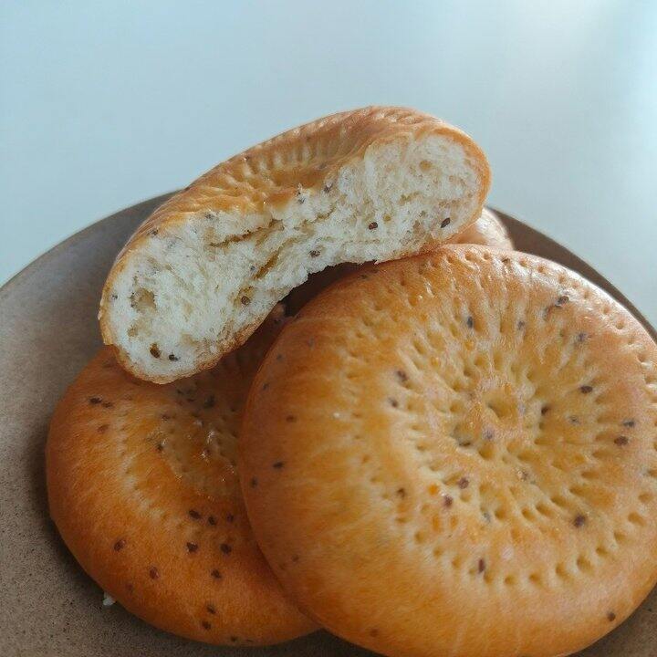 第三款【新疆奇亚籽高钙牛乳小馕】,牛奶、鸡蛋和面,不加一滴水鲜,添加“超级食物”奇亚籽,个人感觉烤箱稍微烤下,表皮有点焦脆更香~