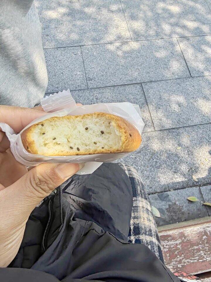 第四款【|黄油海盐卷】这个海盐卷最核心的一点就是——👉 双重黄油 + 纯牛奶和面(不加一滴水)不是那种普通面包用水和面,它是直接用牛奶去做面团的。再加上两种黄油:✔ 新西兰安佳黄油(香味厚)✔ 法国总统黄油(发酵奶香更浓)👉 两种叠在一起,你一撕开就能闻到那种很自然的奶香,不是香精那种味道~(小贩试吃黄油味不是很重,但是口感挺好)