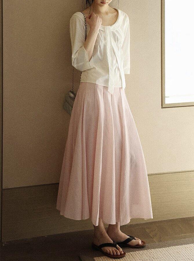 经典极简风U领T➕天丝柔雾粉半身裙