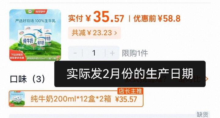 伊利纯牛奶12盒x2箱💰35.9