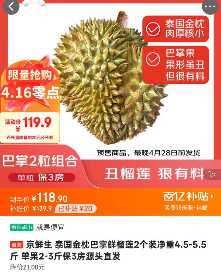 新鲜的金枕巴掌榴莲来了,保3房,往年的反馈都很不错,还是新鲜金枕最好吃~
