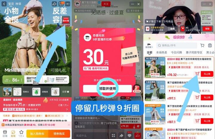 ➕右上角进直Bo间弹9折圈加购