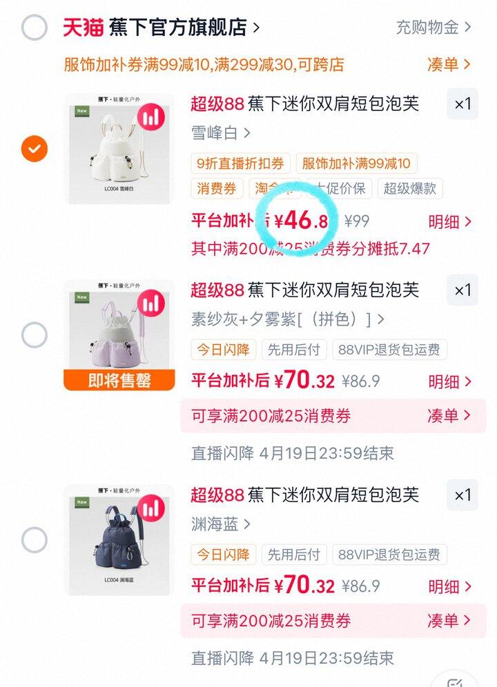 46💰蕉下泡芙迷你双肩包