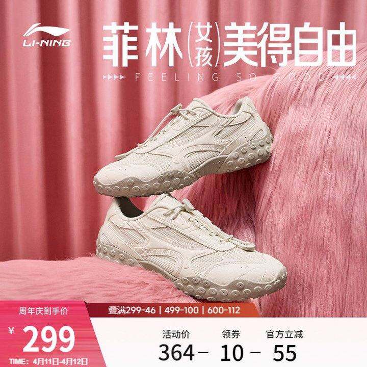 李宁菲林轻舞丨休闲鞋女2026新款复古芭蕾德训鞋轻便薄底运动鞋子
