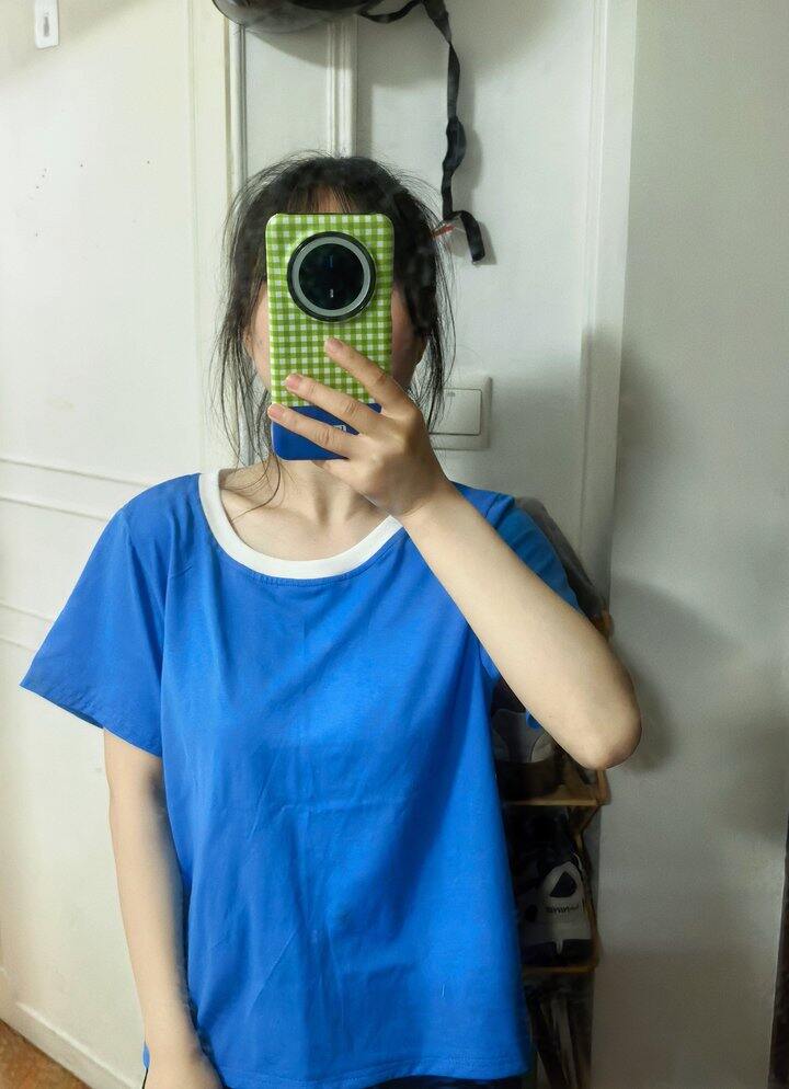 合体t比宽松t更适合我呢,图一加了一丢滤镜显得自己更白了