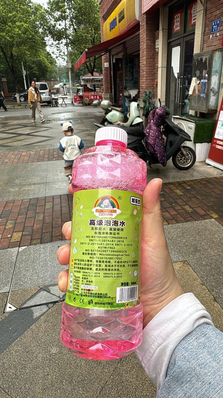 楼下超市买的泡泡水,比之前送的浓缩泡泡液好很多,不用兑水,直接倒进去就好