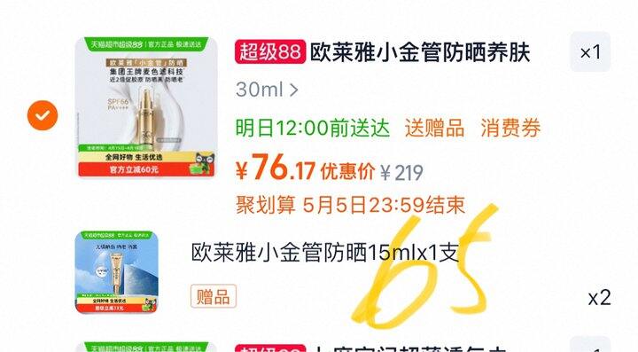 欧莱雅小金管防晒霜