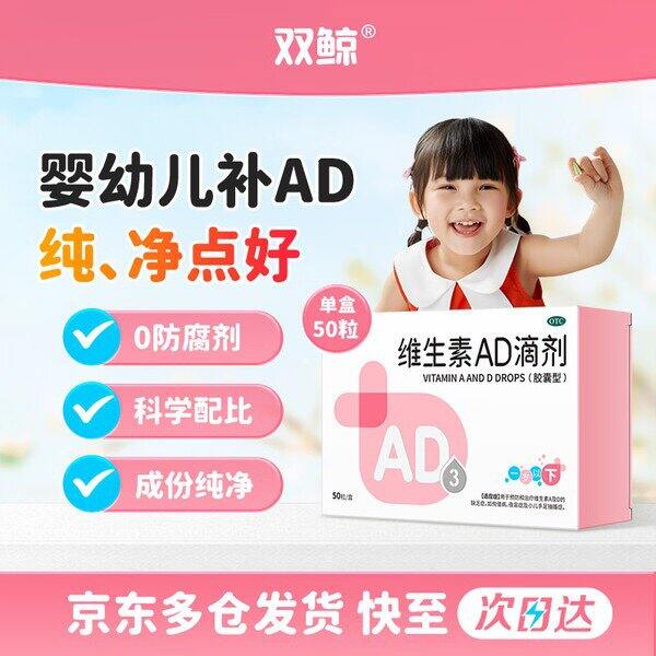 很不错价~【0.29/粒】双鲸 维生素AD滴剂(胶囊型)50粒一岁以下