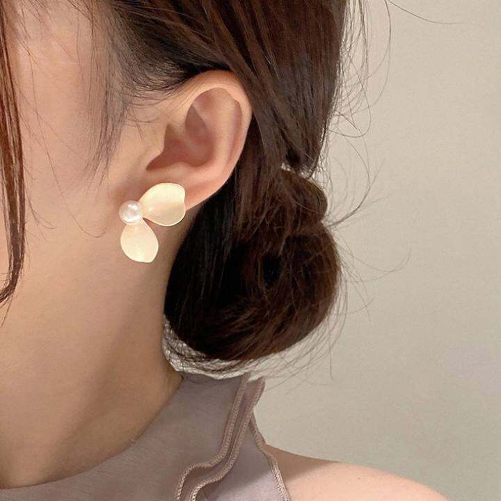 小众设计感花朵耳环2023年新款潮高级感珍珠耳钉女纯银针S925耳饰