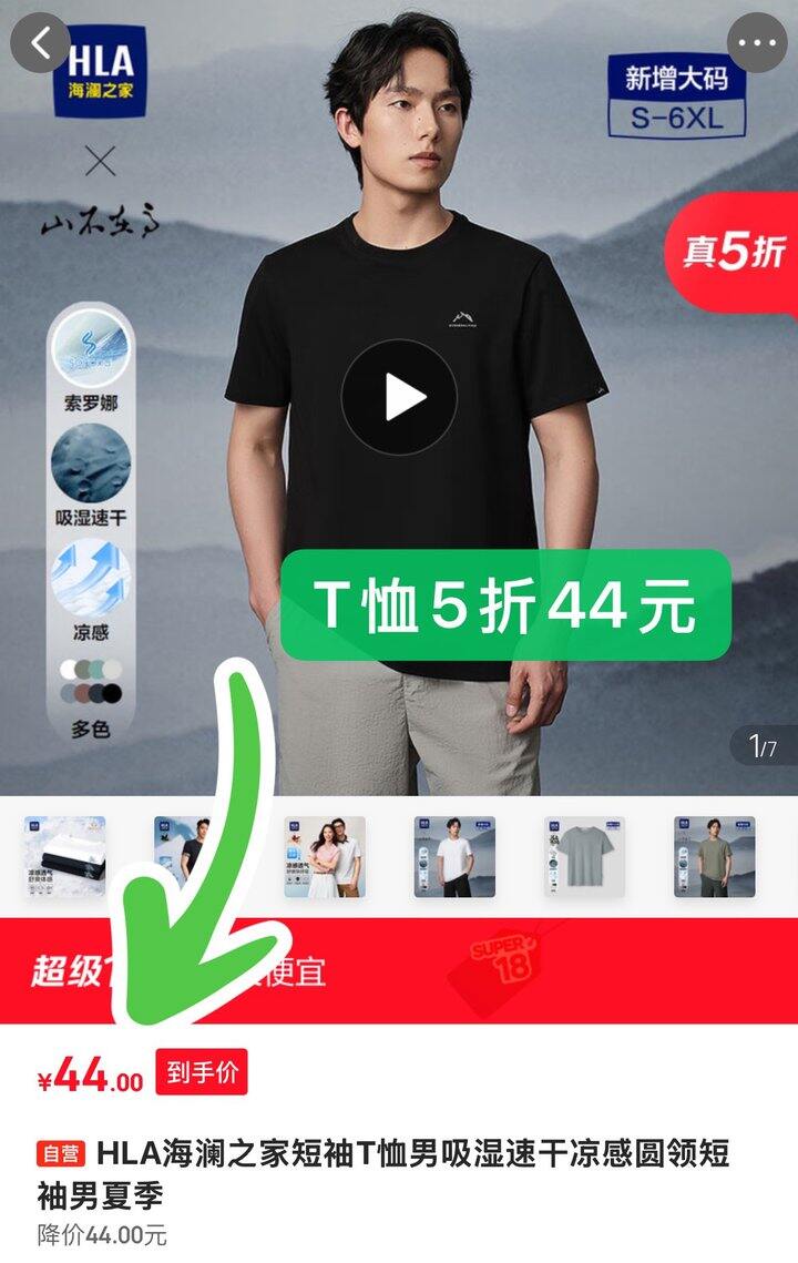海澜之家T恤5折价44元‼️