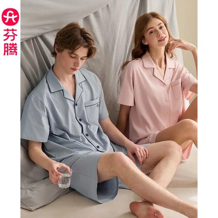 芬腾 情侣睡衣夏季薄kuan纯棉短袖短裤套装【59】