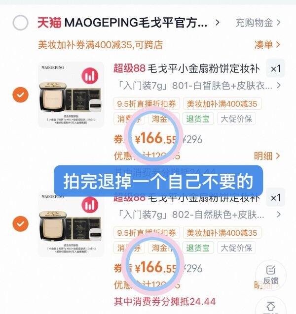 然后都看图两个都从淘金币加购物车1遍(回到购物把数量2改为1)