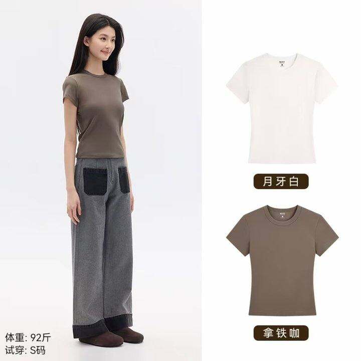 「棉的美学」正肩短袖t恤女夏2026新款修身显瘦白色内搭打底上衣