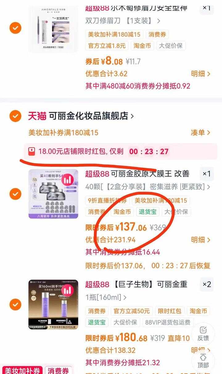 下拉领𝟏𝟖𝟎-𝟏𝟓美妆加补券