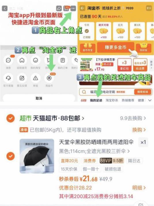 💰21,右上角进“淘金币”拍1件