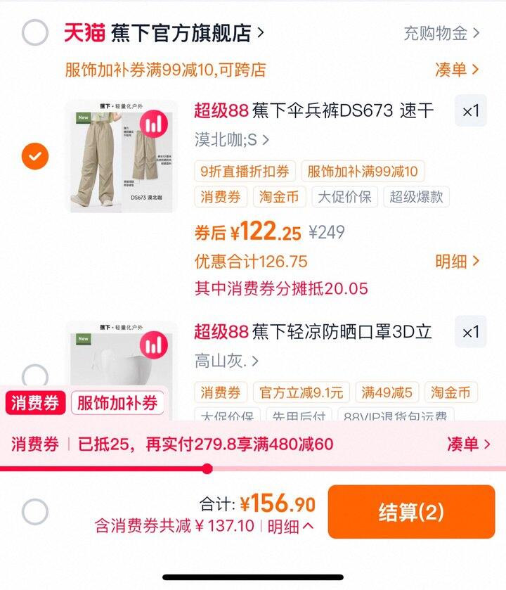 蕉下伞兵裤丨122.3