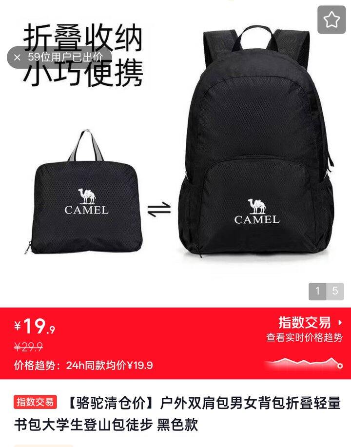 💰19.9元骆驼双肩折叠包1个