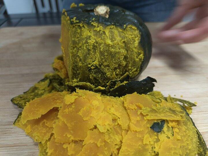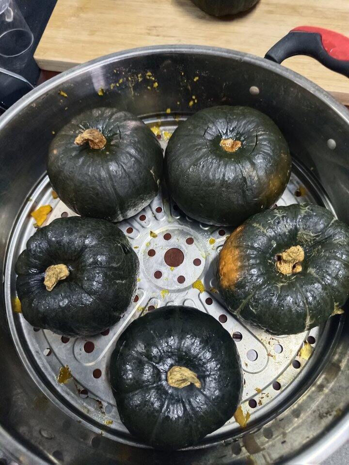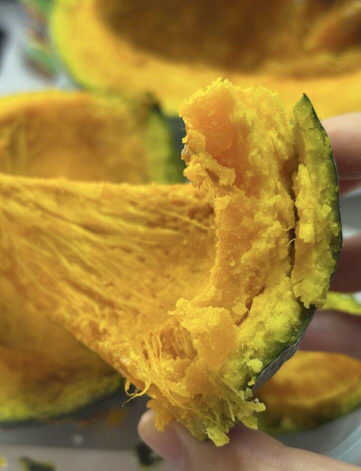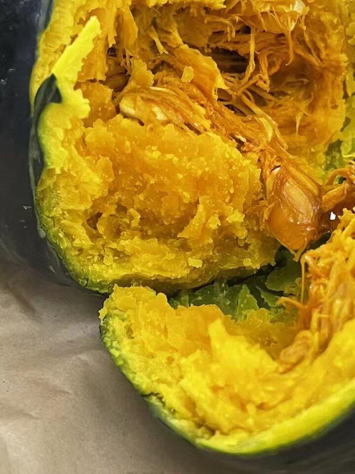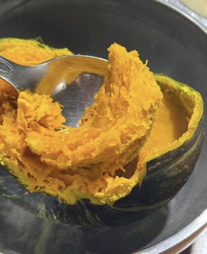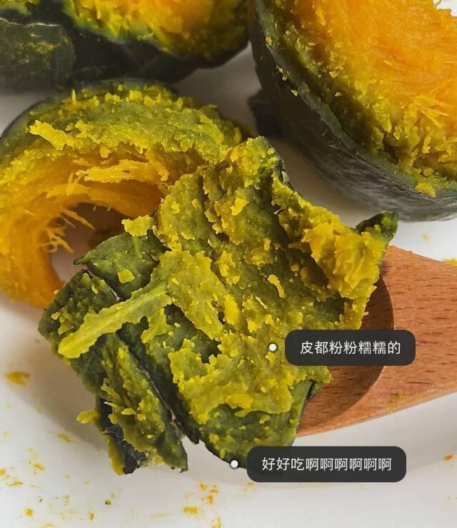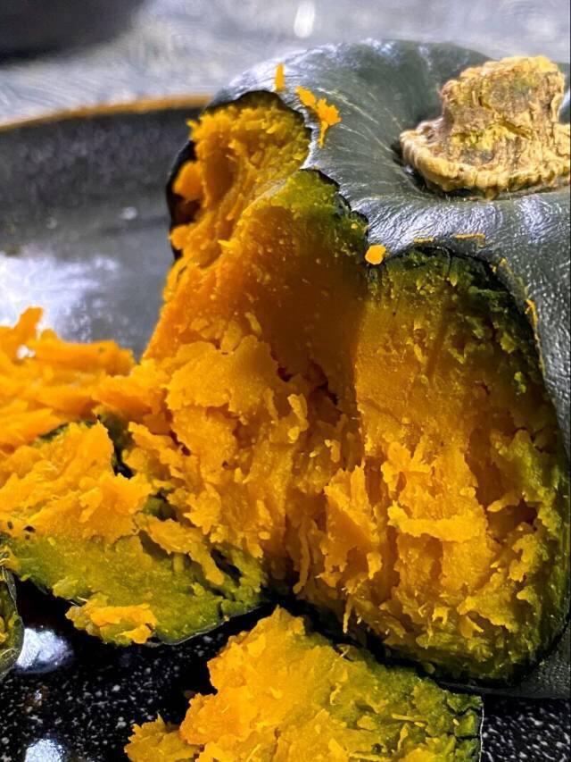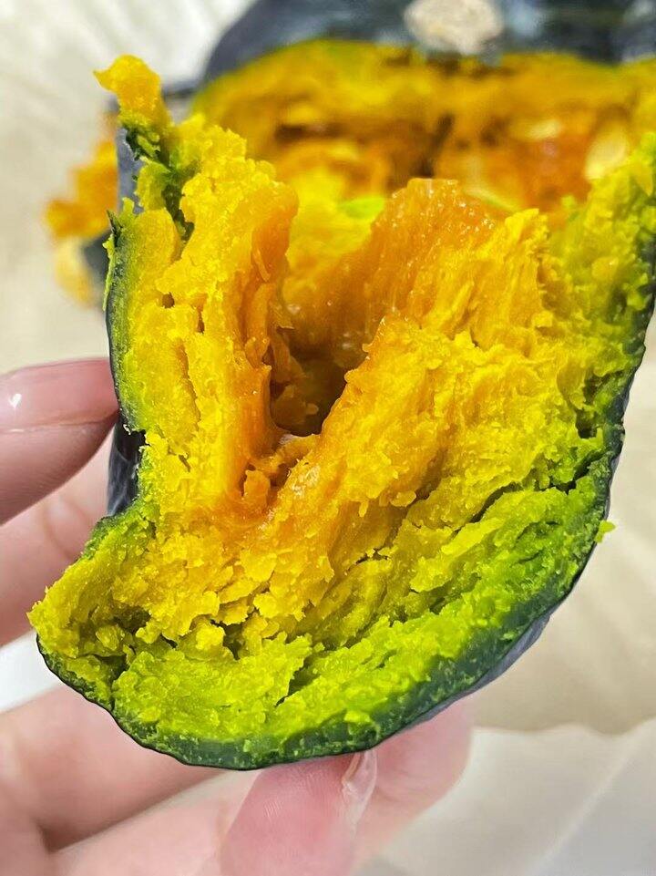 瓜身墨绿,内心却是火热🔥肉厚金黄😋带皮放在锅里蒸还没熟都能闻到浓郁的南瓜香飘出来~口感特别软绵!!用勺子轻轻一压就变成了泥~瓜肉细腻好消化❌不添加任何调料南瓜的口味宝宝也特别喜爱~~