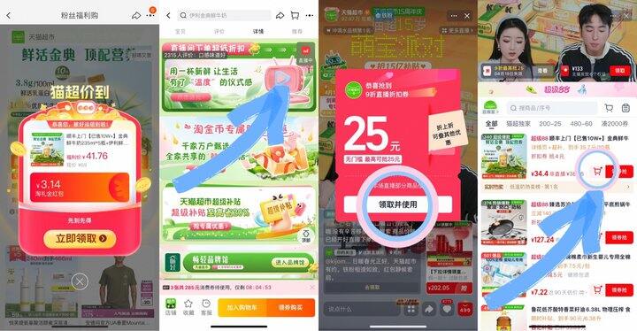 🪄领礼金后下拉详情页进zbj弹9折券加购