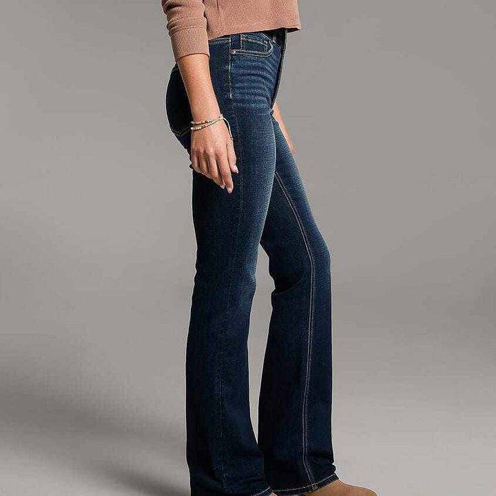 外贸原单高弹力大长腿美式复古牛仔喇叭裤双扣高腰微喇牛仔长裤子