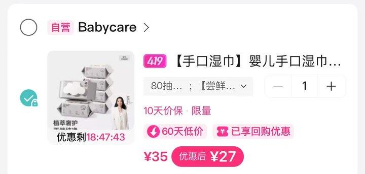 1️⃣白盖湿巾80抽*6💰4.5/包