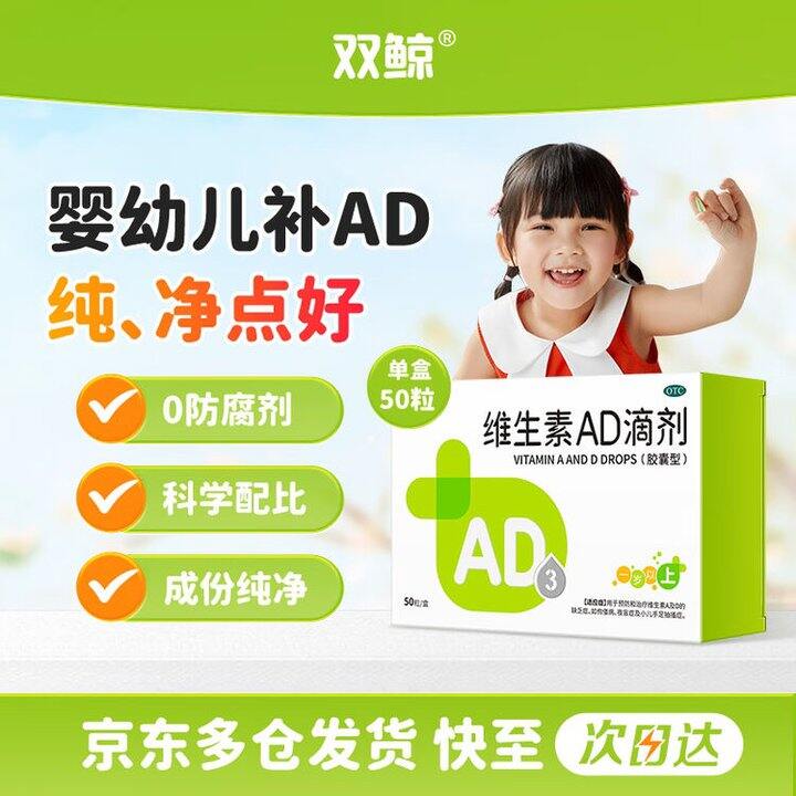 💊双鲸维生素AD滴剂 50粒/盒