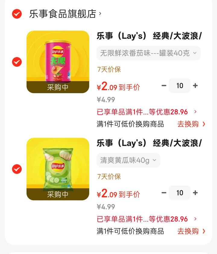 今天这个任选乐事组合,有十个口味可以选,还有罐装的,出行带着不怕压碎了~