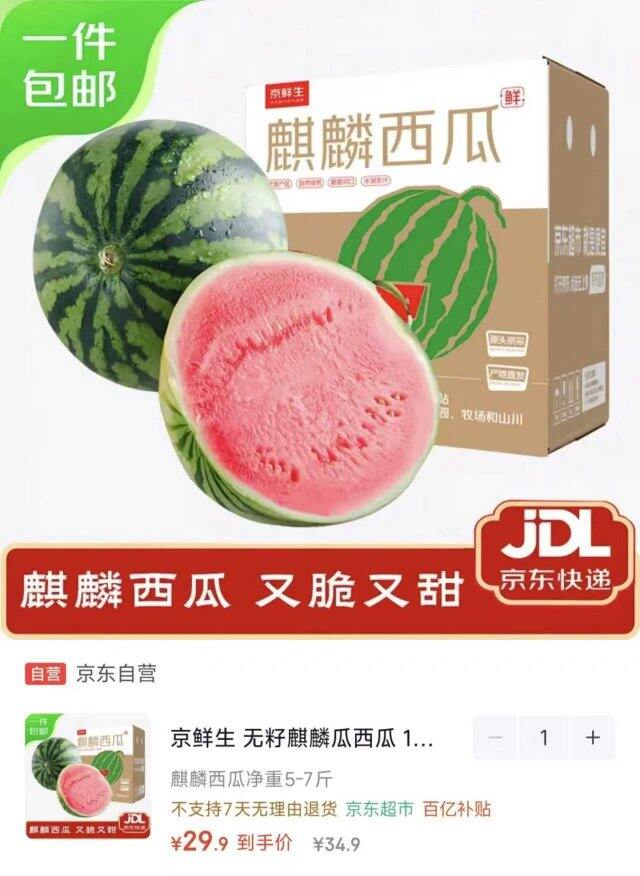 領https://3.cn/2Lh-KT3G京鲜生 无籽麒麟瓜西瓜 1粒装https://u.jd.com/jGUElju