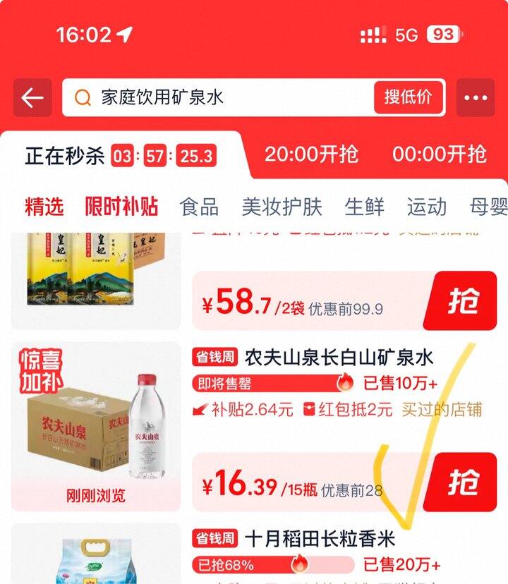 下拉详情页进入秒杀,按照提示从首页秒杀加购,拍下15.5