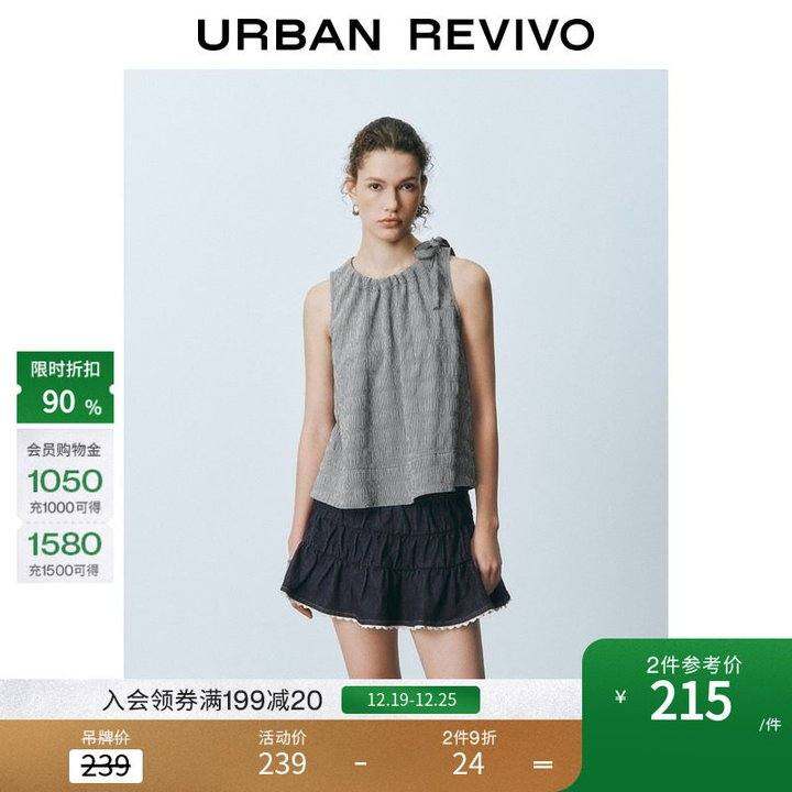 UR2025秋季新款女装蝴蝶结系带格纹无袖罩衫衬衫UYU250069
