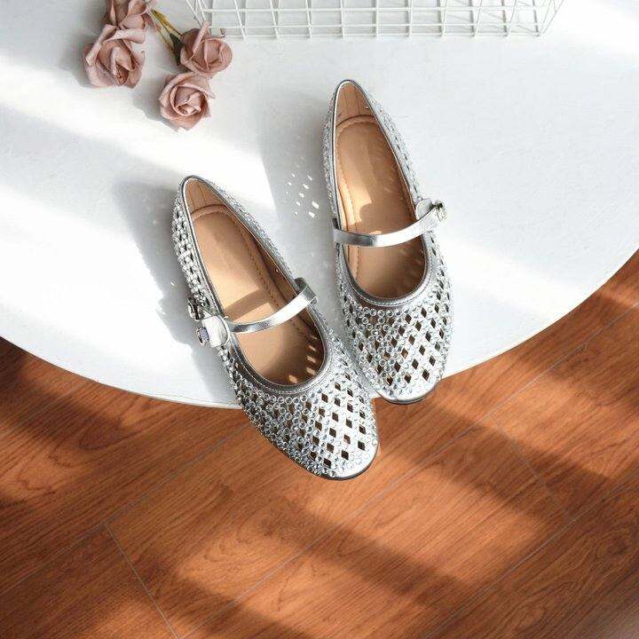 砖贵!头层牛皮镂空玛丽珍鞋2026春夏透气清爽平底柔软水钻女单鞋